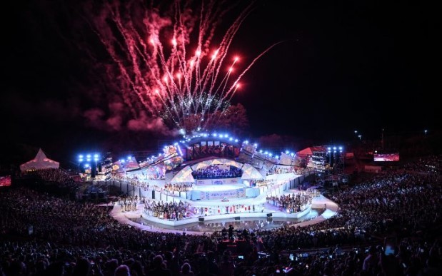 Durante dos noches el Teatro Griego Frank Romero Day será el escenario mayor de Mendoza y la casa de la Fiesta Nacional de la Vendimia. Allí, el espectáculo “Guardiana del Vino Eterno”, tendrá su estreno el sábado 8 de marzo, noche en la que también se llevará a cabo la elección y coronación de la soberana nacional. La siguiente noche, el 9 de marzo, respectivamente y posterior a la puesta en escena del espectáculo artístico, como es habitual, actuarán músicos mendocinos, en el cierre, la presentación de Soledad y Jorge Rojas.