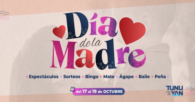 Desde el viernes 17 hasta el domingo 19 de octubre celebramos a nuestras madres en su día. Los festejos llegarán a todos los distritos del departamento, con actividades pensadas para compartir, disfrutar y homenajear a las mamás tunuyaninas.