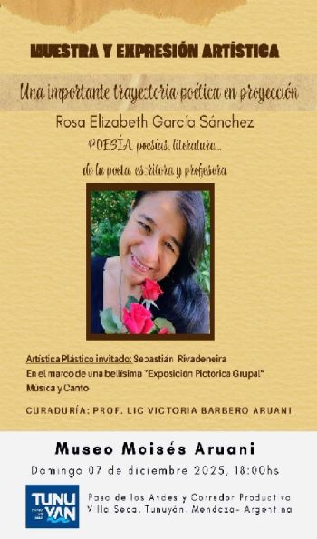 Una tarde de arte y poesía llega al Museo Moisés Aruani: más de 45 obras, esculturas, artistas locales e invitados, la primera presentación literaria de la profesora Rosa García Sánchez en un encuentro que celebra la creación y la identidad cultural.