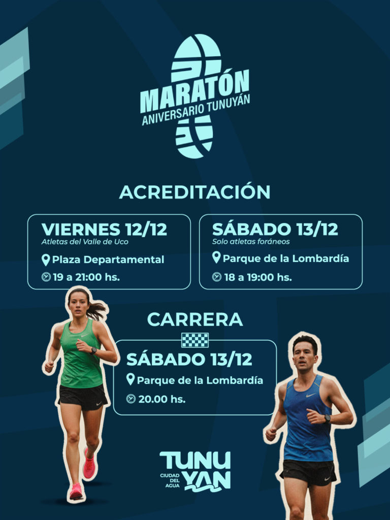 La Maratón Aniversario de Tunuyán inicia su recta final, con el cronómetro en marcha, la Municipalidad confirmó los días y horarios para la acreditación y la carrera.