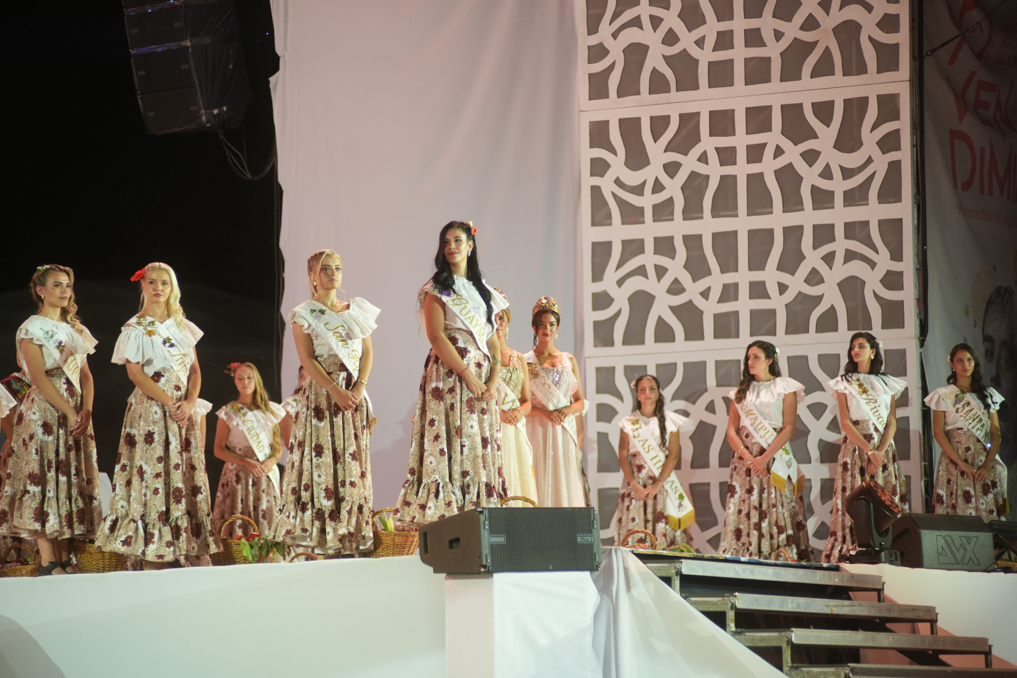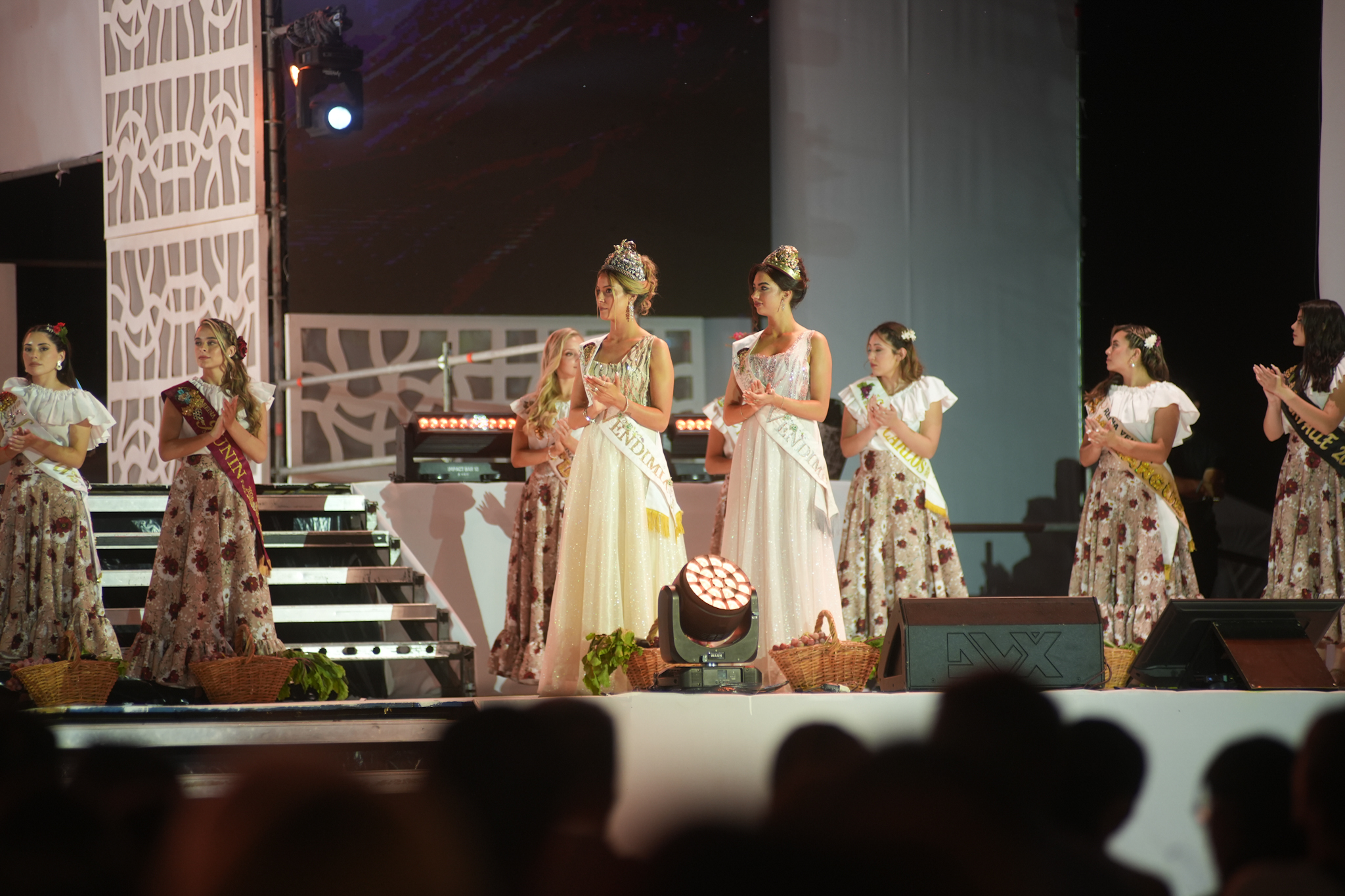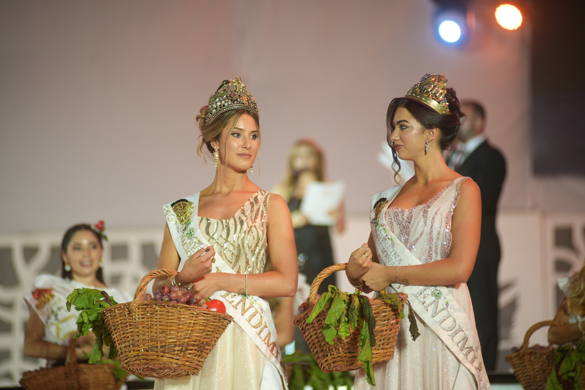 Luego, las candidatas departamentales, junto a la Reina y la Virreina Nacional, participaron del gesto simbólico de elevar canastos con frutos de cada rincón de la provincia, reafirmando que: antes de la corona, está la tierra; antes del aplauso, el trabajo y antes del vino, la vid.