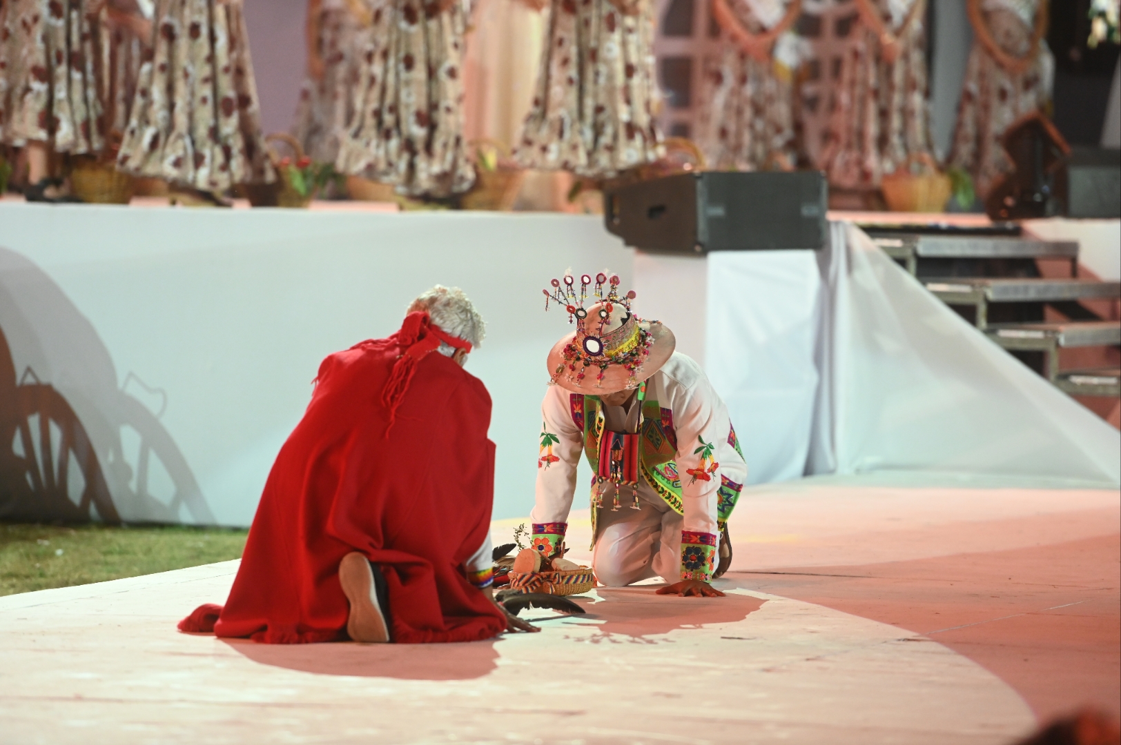 La ceremonia evocó la revolución agrícola y el nacimiento de las primeras comunidades, destacando el gesto fundacional de sembrar como un acto de confianza y memoria. Más tarde, el escenario se pobló de mesas familiares diversas, representando el momento del encuentro y el agradecimiento por el alimento que llega tras el esfuerzo colectivo.