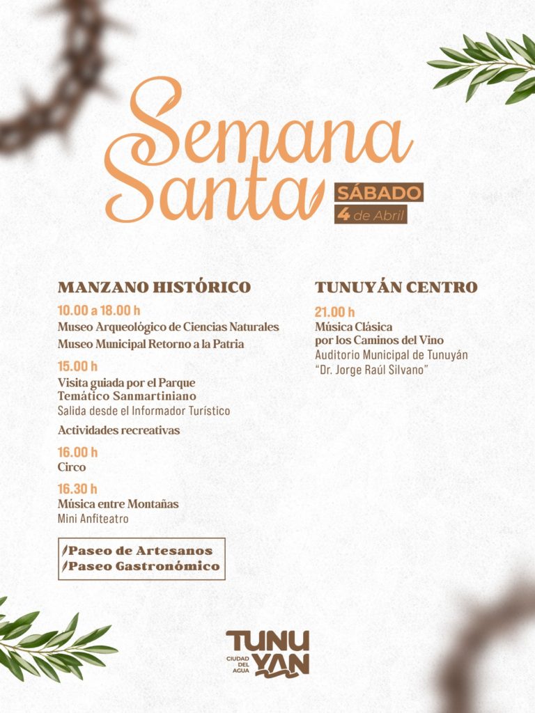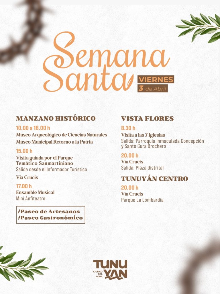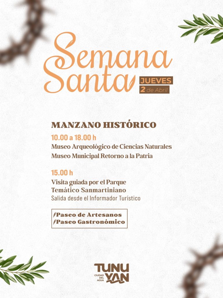 El departamento se prepara para recibir a vecinos y turistas en una nueva Semana Santa con una agenda pensada para el encuentro, la reflexión y el disfrute en entornos únicos del Valle de Uco. Del 2 al 5 de abril, el Manzano Histórico será uno de los principales escenarios, con propuestas destinadas a toda la familia. Habrá visitas guiadas, museos abiertos, paseo de artesanos, patio gastronómico, actividades recreativas, espectáculos de circo y música en vivo, en un entorno que combina historia y naturaleza.