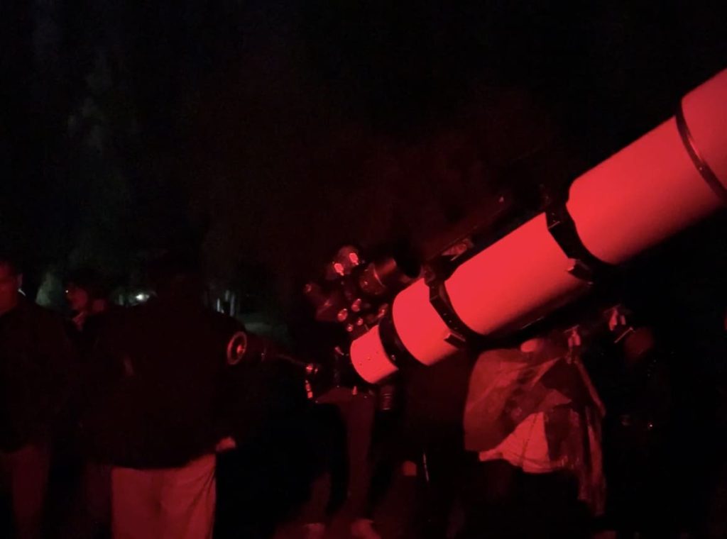 La actividad comenzó pasadas las 20:00hs con una charla a cargo de dos divulgadores científicos pertenecientes a la organización sin fines de lucro “El Firmamento”, quienes guiaron a los asistentes en un recorrido por los misterios del universo. En un sendero del predio, bajo una atmósfera de penumbra especialmente preparada, se instaló un telescopio desde el cual los participantes pudieron observar el planeta Júpiter y algunas de sus lunas, generando gran interés y asombro. Si bien las condiciones climáticas cambiaron y la nubosidad impidió continuar con la observación directa del cielo, la experiencia no se detuvo. Los especialistas continuaron con una exposición enriquecida por fotografías telescópicas y una conversación dinámica que mantuvo cautiva la atención del público.